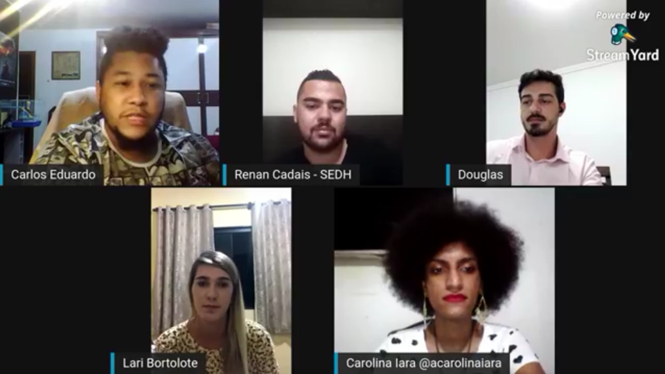 Além delas, o bate-papo contou com a participação do gerente estadual de Políticas de Diversidade Sexual e Gênero da Secretaria de Direitos Humanos, Renan Cadais, que fez a abertura; do coordenador colegiado do Fórum Estadual LGBT do Espírito Santo, Douglas Admiral; e mediação de Carlos Eduardo Medeiros de Melo, representante do Instituto Brasileiro de Transmasculinidade do Espírito Santo (IBRAT-ES), do Conselho LGBT+ do Espírito Santo e do Fórum Estadual LGBT.
