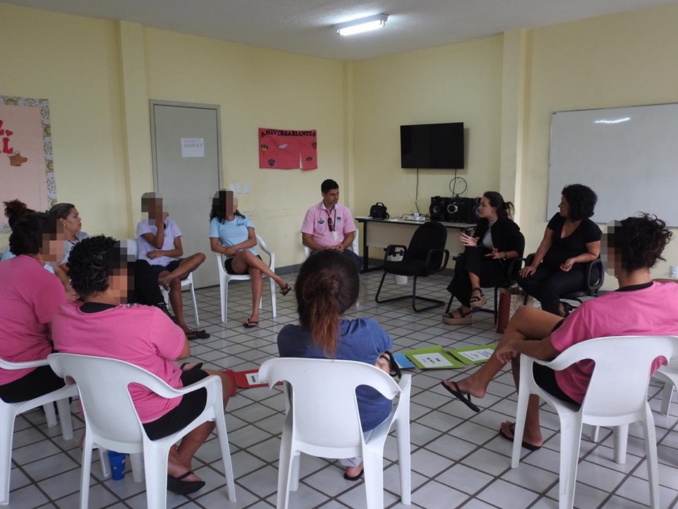 No período da tarde, a Unidade Feminina de Internação de Cariacica recebeu a equipe da Subsecretaria de Políticas para as Mulheres e da Gerência de Políticas para a Juventude da SEDH. As adolescentes participaram de um bate-papo sobre violência psicológica, física, sexual, patrimonial e moral.