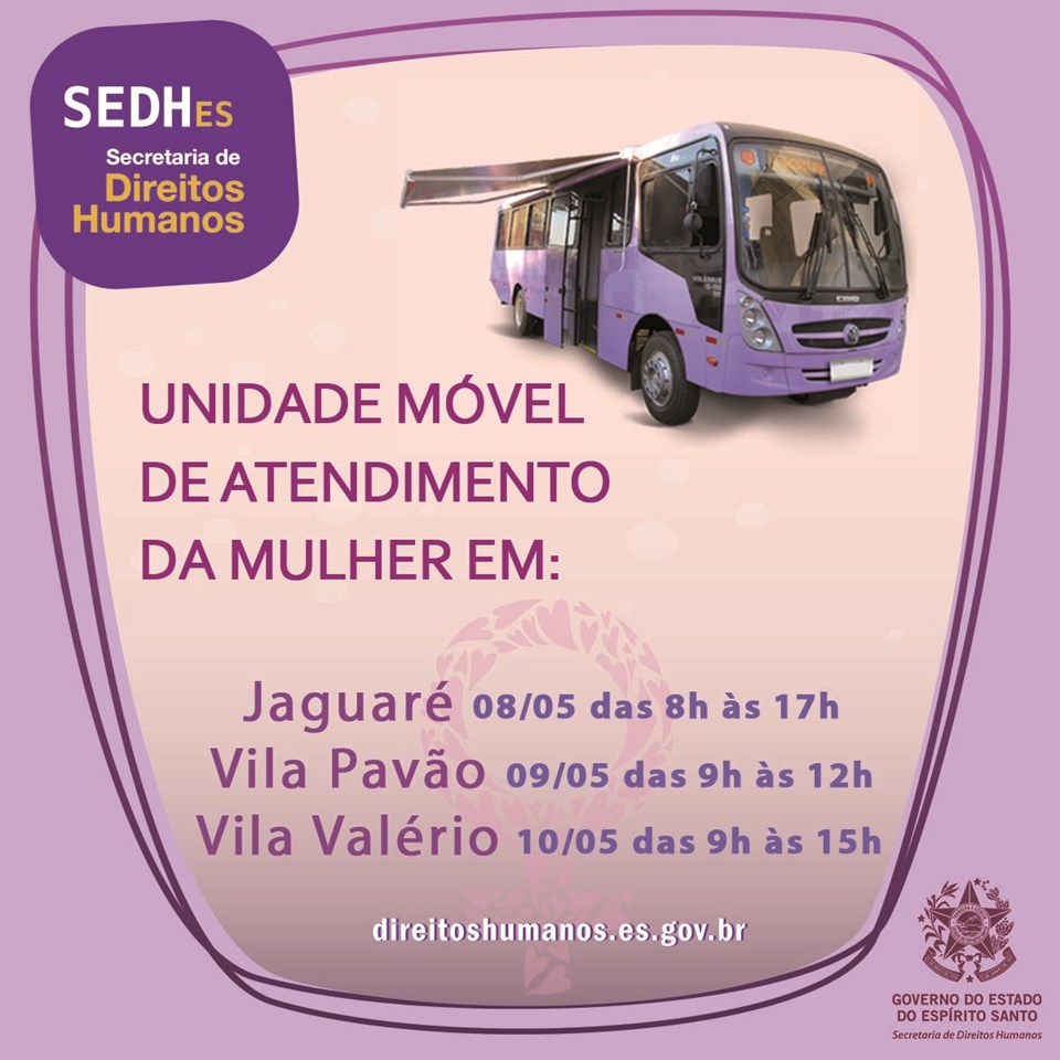 Nesta quarta-feira (09), o veículo vai estacionar no Centro de Vila Pavão, das 9h às 12h, para atender às mulheres do município, com orientações e serviços destinados a elas. No dia seguinte, quinta-feira (10), a unidade móvel chega a Vila Valério, para atender à população das 9h às 15h, no pátio da Secretaria Municipal de Agricultura.